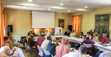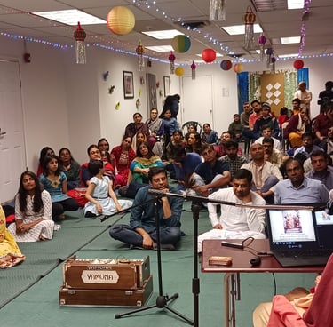 Kirtan (Sound Meditation): Immerse yourself in melodious Vedic hymns, harmonious Chants, and Mantras dedicated to Krishna and experience divine tranquility.